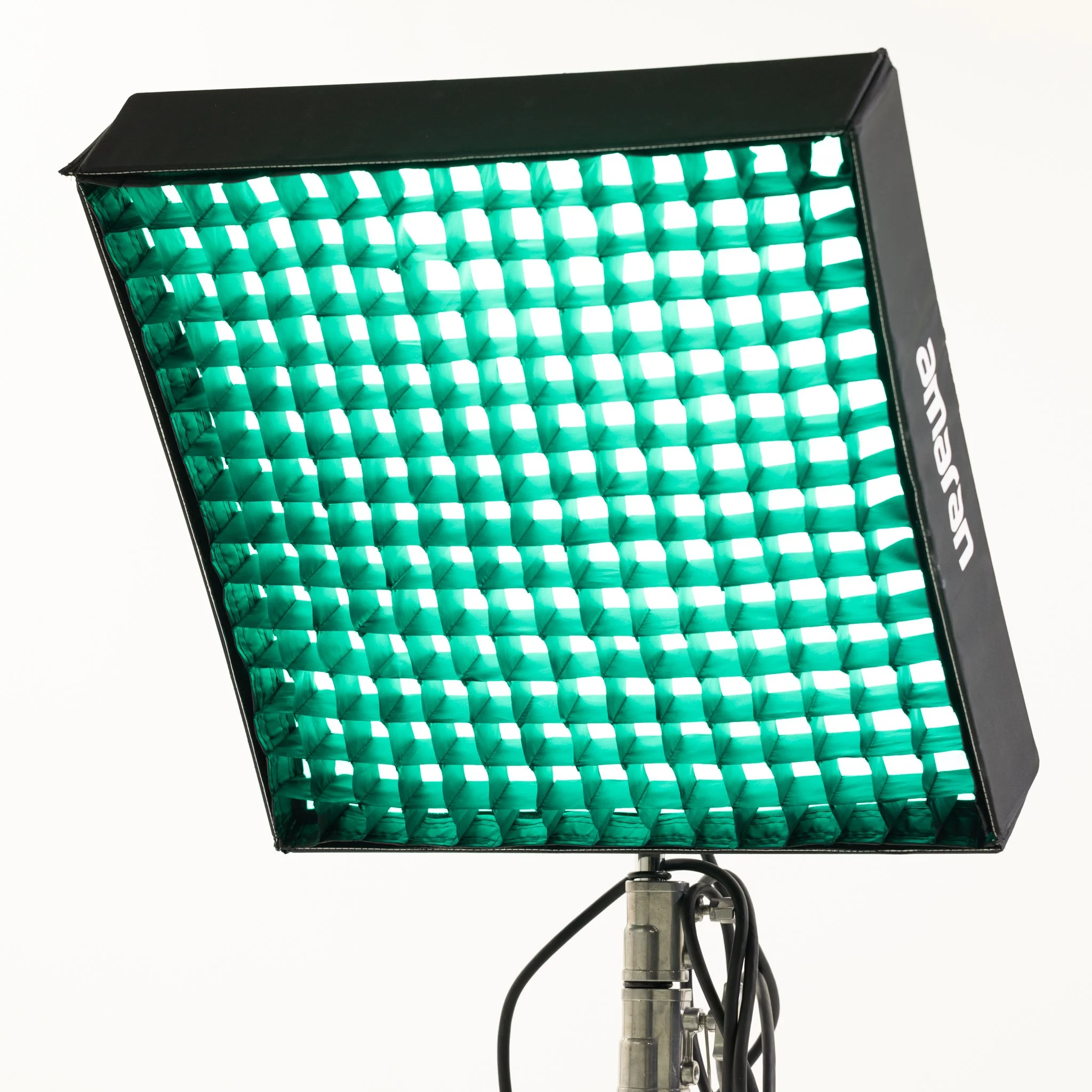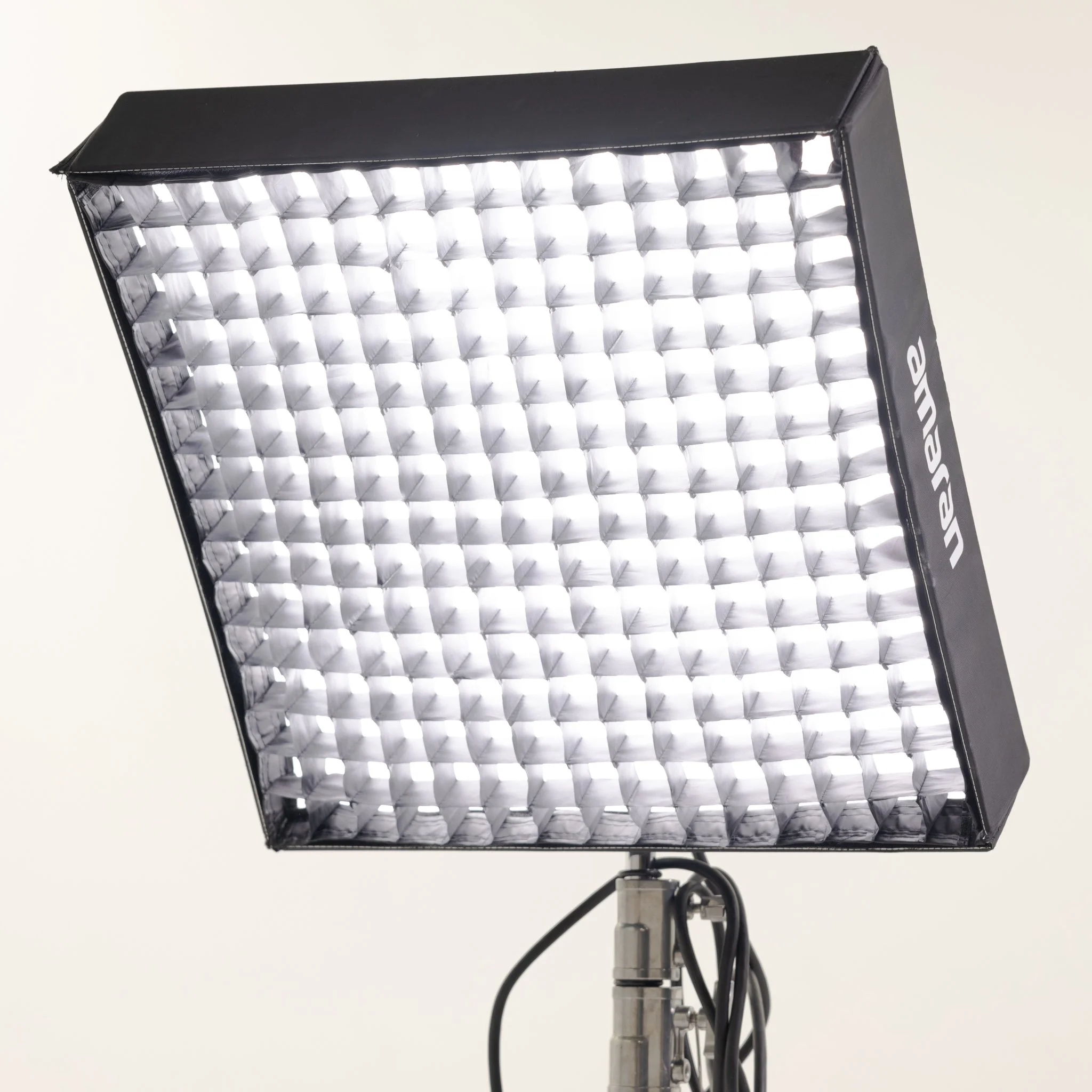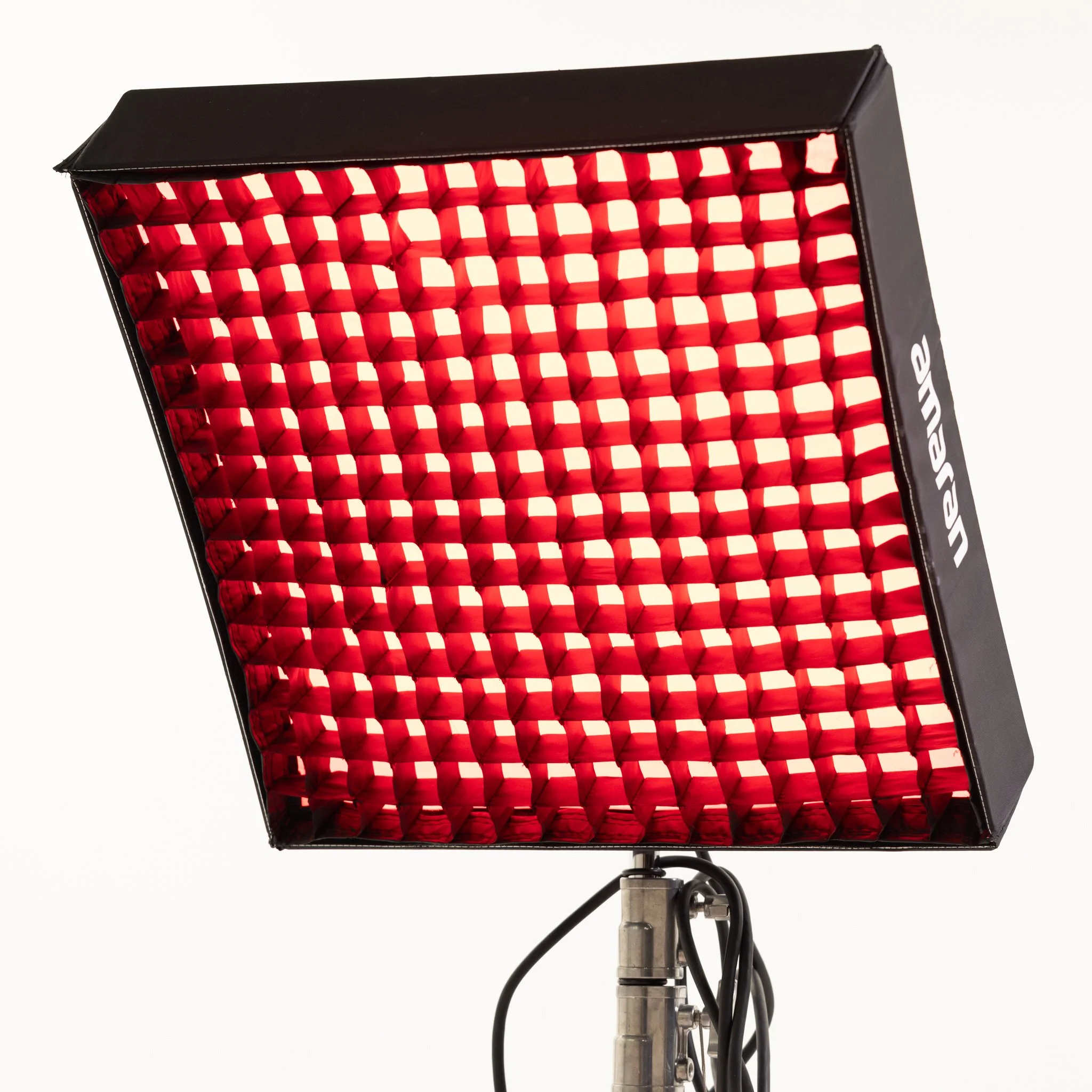 To add a beautifully controlled soft light to your scene, attach the included softbox, one of two strengths of diffusion cloths, or the included light control grid using the integrated hook-and-loop fabric to further finesse your lighting design. The F22c can also be combined with the amaran F22 Lantern with light control skirt to extend the fixture as a volumetric lantern or pancake light.