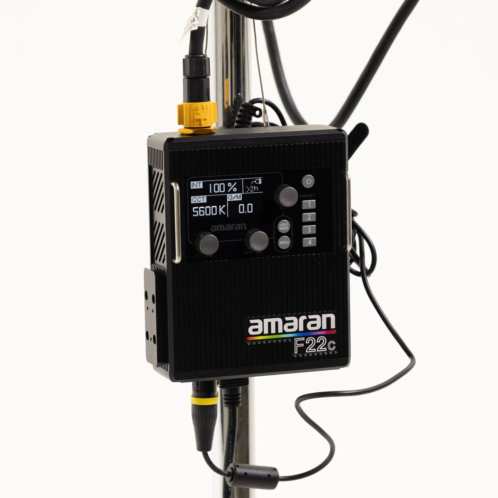 For creators looking for a compact and portable lighting solution with a seamless user experience, the F22c control box features a multi-voltage V-Mount or Gold-Mount battery plate compatible with 14.4V/26V/28.8V/48V batteries. Full output can also be achieved using the AC power supply.